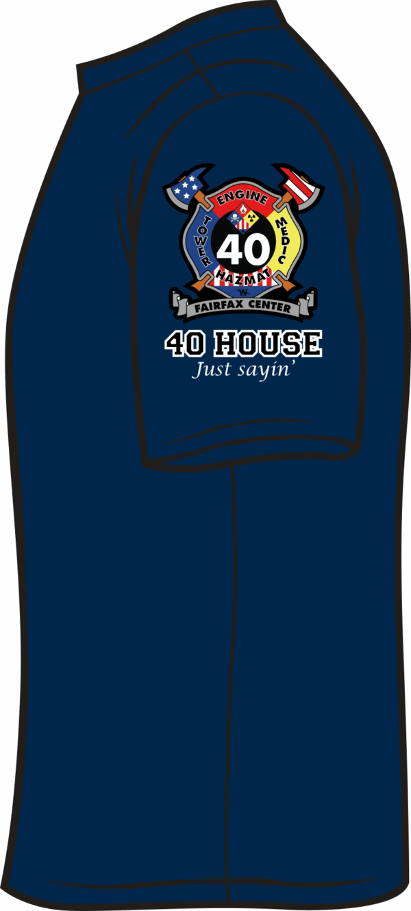 FS440 T-Shirt with short-sleeves. Fairfax County patch on left chest, HAZ40MAT on the back and 40 House logo on the sleeve.